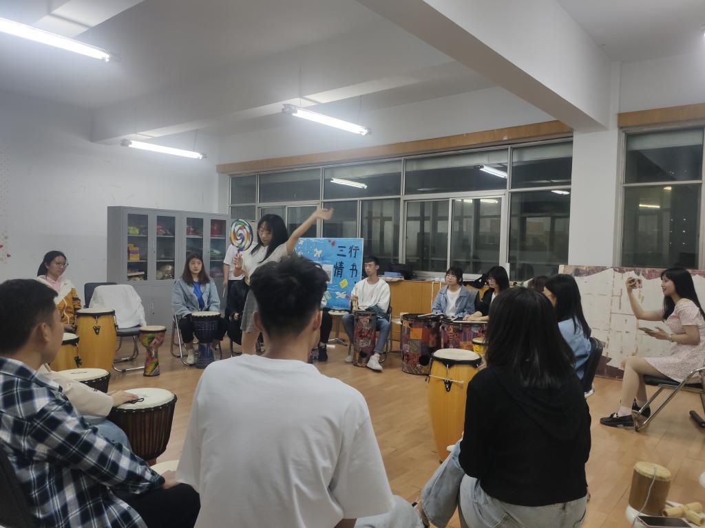 第三次活动时间为5月28日19:00-20:30,以“提升人际交往能力”为主题。由我院大学生心理调查研究会邀请我院大二每个班级1-2学生为代表,共30余名学生参与了本次活动。本次活动包括音乐放松、音乐互动及合作演奏三部分内容组成。通过此次活动,参与者体验了合作的快乐、灵感的激发与创造力的产生,提高了参与者的沟通和社会交往能力。