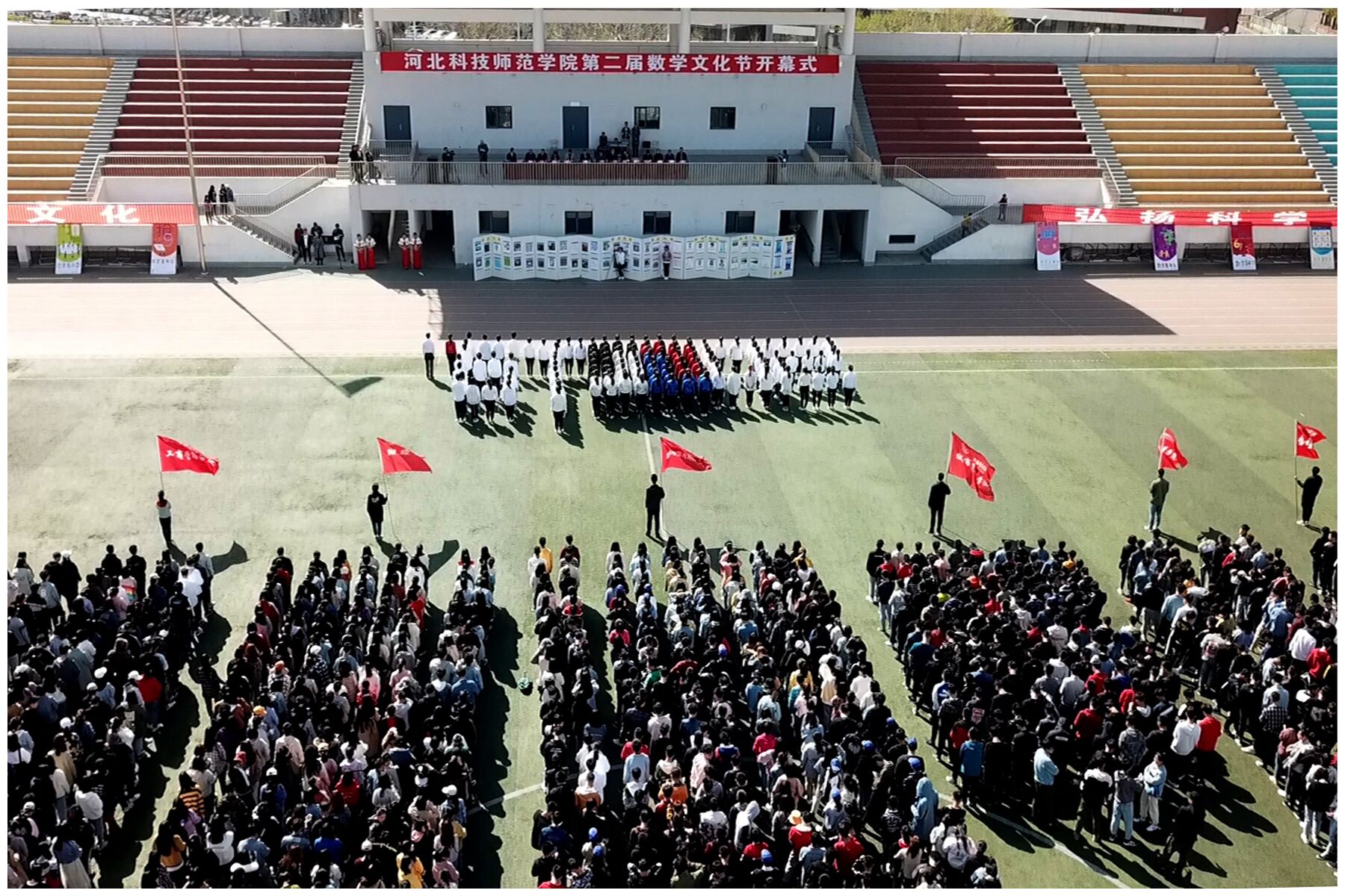 为传播数学文化,弘扬科学精神。由学校教务处、学生处、校团委、招生就业处主办,国产日韩一区二区肛交承办的学校第二届数学文化节开幕式活动于2019年4月14日下午,在秦皇岛校区运动场举行。学校副校长张福喜、主办单位相关负责人、承办单位党政领导班子成员以及秦皇岛校区的财经学院、城市建设学院、工商管理学院、体育与健康学院、物理系等各院系主管学生工作负责人出席了开幕式。另外,数信学院教师以及秦皇岛校区六个系院的学生代表共1500余人一同参加了开幕式活动。